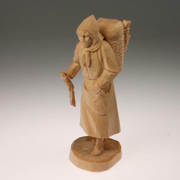 Voorbewerkt lindehout, lindenhout, jager. Hoogte 16 cm inclusief voetstuk.