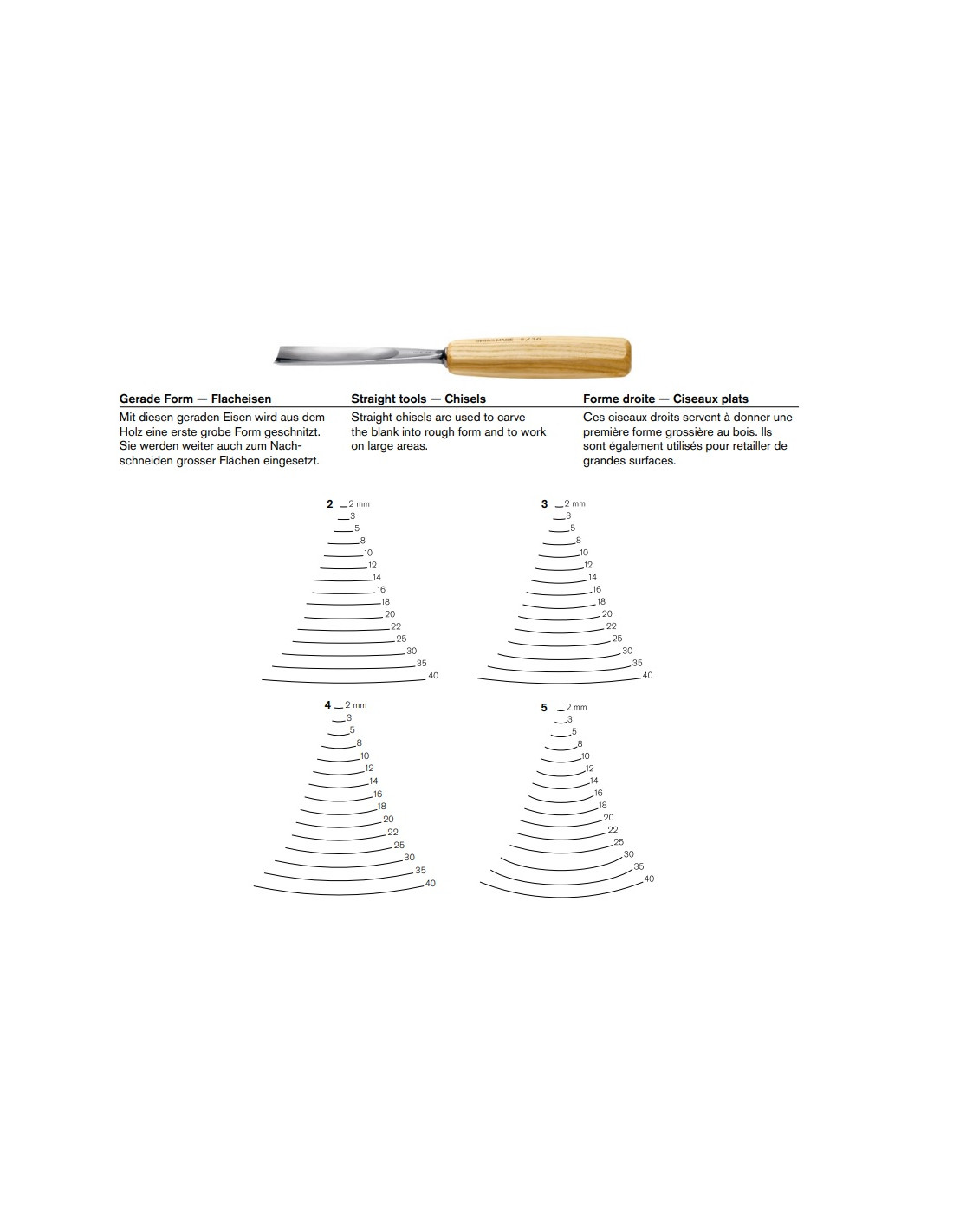 Rechte gutsen uit de serie 5 van Pfeil worden doorgaans gebruikt om grof mee te werken over een groot oppervlak van het werkstuk.